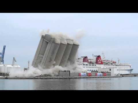 Sète - Vidéo - Destruction silo à grains du port de Sète 27 mars 2013